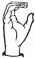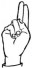 На ћирилици написано БЛАЖА НАСТИЋ састоји се из 11 слова [?]. Исписано ћириличном једноручном азбуком за глувонеме: